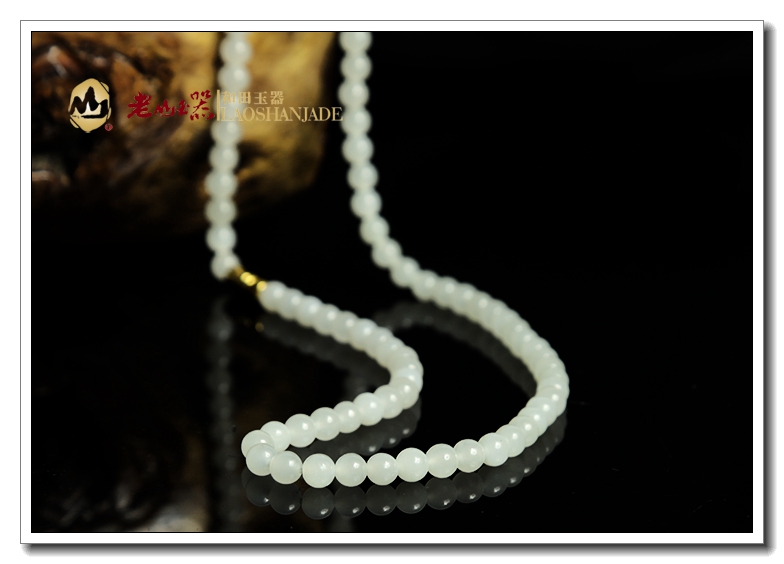 【老山玉器】和田羊脂白玉圆珠项链