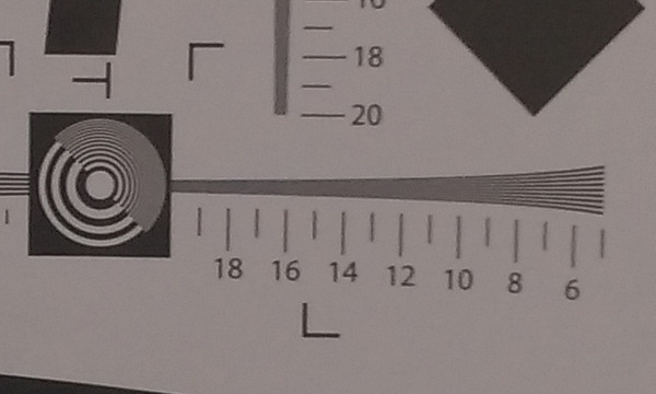 换装1300像素的摄像头后,对比起以往的400万像素,解析力得到了不少的提高。不过对比起市面上中高端旗舰的1300万像素手机,M8的解析度处于中等水平,可以看到上图的线束还可分辨的区域在8-9之间,解析力还有上升的空间,图像细节的涂抹还是偏多。
