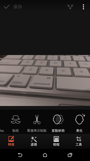 很多M8里面的特效其实都是先拍后再进行处理,这与大部分手机的先进入该模式拍照是有顺序的不一样。包括Ufocus(先拍照后对焦)、背景虚化、四季特效、3D显示模式、变脸妙拍都在图片编辑选项里面。功能特效众多,可玩性不错,但是仍然需要吐槽这些特效藏在了二级菜单,使用成本和便捷度大大增加,新用户难寻找,不容易发觉。