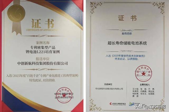 在强手如林的评选中,中创新航凭借硬核科技脱颖而出,斩获两项殊荣。除核心电池产品的案例入选外,其“超长寿命储能电池系统”同时获评“2025年度绿色技术创新案例”,充分展现了企业在从动力电池到储能系统全链条上的创新引领能力。