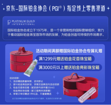 近日,京东与国际铂金协会(PGI®)达成战略合作,成为其首个线上零售合作伙伴,双方将共同推动铂金首饰的线上消费体验升级。同时,京东“铂金购物节”也同步开启,即日起至12月31日,消费者在京东APP搜索“铂金购物节”,即可选购周大福、周生生、六福珠宝、周六福、潮宏基等知名品牌的铂金首饰好物,享满1299元赠珠宝箱及欧舒丹润手霜、满3000元赠珠宝箱及兰蔻润唇膏等专属礼遇,由国际铂金协会专属定制。