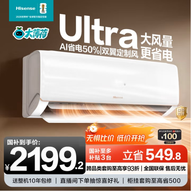 满配奢享款:海信大薄荷空调易省电Ultra(KFR-35GW/A330UPro-X1)
