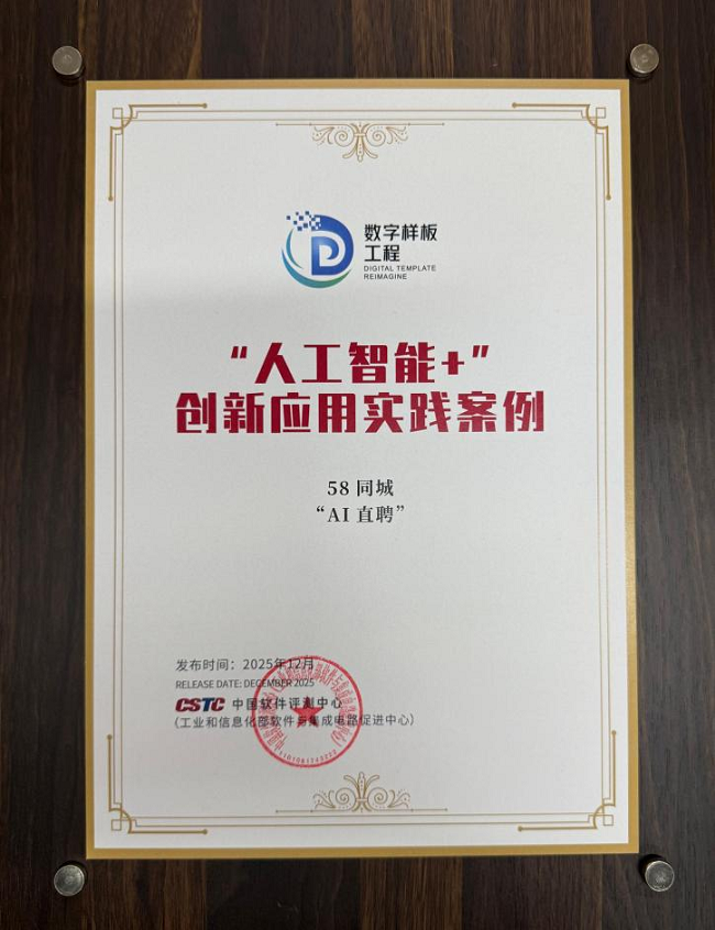 这一看似日常的直聘场景,正是人工智能在本地生活服务领域落地应用的真实缩影。近日,新华网联合中国软件评测中心人工智能部课题组发布《实体经济和数字经济深度融合发展报告(2025)——“人工智能+”创新应用》(以下简称“报告”),系统梳理了人工智能在制造业升级、数字消费、服务民生、政府与公共服务等方向的实践成果。58同城推出的“AI直聘”作为“人工智能+”创新应用实践案例入选,成为生活服务业代表样本。