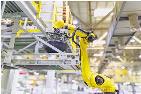 在中策橡胶临江制造工厂,轮胎生产制造全程由机器人完成。 本报记者 曹坚 摄