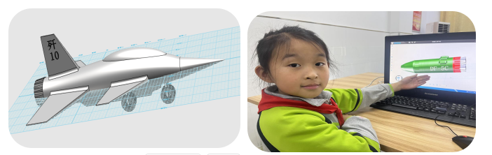 科技军事主题作品展区同样亮点纷呈。从歼-10模型到东风-5C模型,小社员们以浓厚的兴趣为驱动,挑战大型项目的设计与制作。他们首次尝试将大型项目分解为多个小模块逐一设计,再通过精确的对齐、组合完成“总装”,完整模拟了真实的工程设计流程。这一过程不仅提升了社员们的建模精度,更有效锻炼了他们的空间布局思维与统筹规划能力。