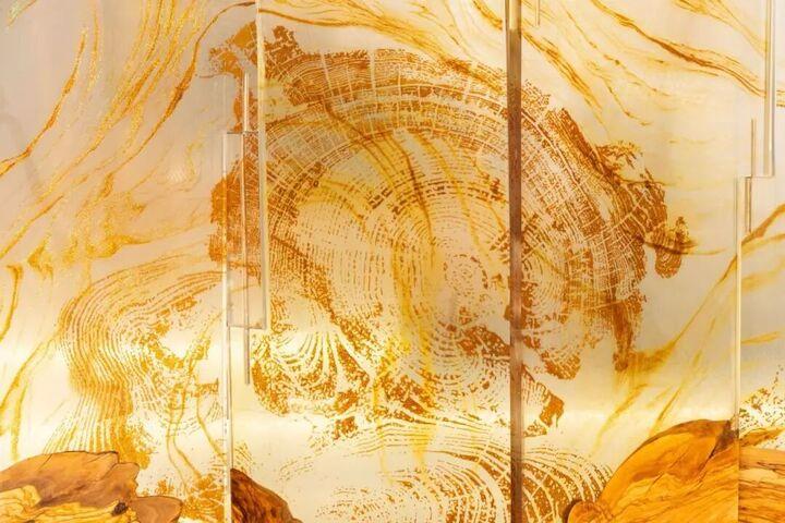 无边框双面屏风《经纬流光》,是李文博与丁一成联合设计、团队用3年打磨的工艺结晶。苏绣精雕年轮纹理,营造天人合一的静谧禅意;光影变幻间,绣面时而温润如琥珀,时而清透似水晶,韵味独具。两款作品既是姚绣“非遗融入当代生活”的实践范本,亦精准呼应展会“有灵魂的设计”的追求。