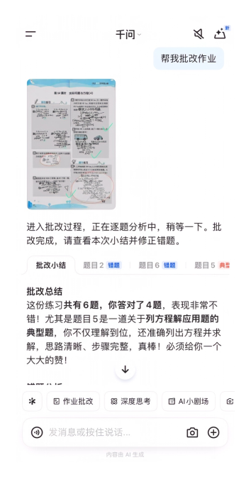 针对“题海战术”的痛点,千问还上线了“举一反三精准练”功能。在批改作业并定位错题后,千问能自动生成3道“陷阱”相似、考点一致的变式题,让练习更为高效。