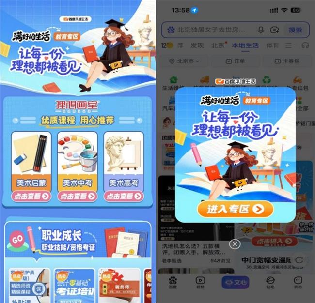 教育专区活动现已同步上线,上百度本地生活,轻松找到适合你的学习选择,让理想的教育一步到位!