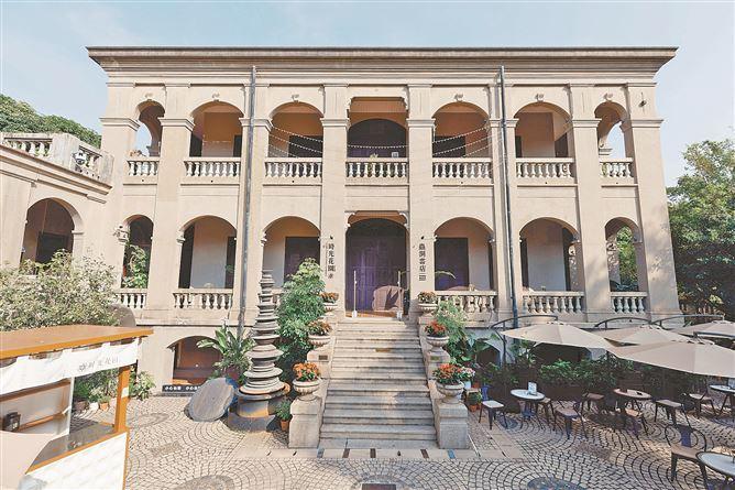虫洞书店坐落于鼓浪屿百年老建筑海天堂构内。(虫洞书店 供图)